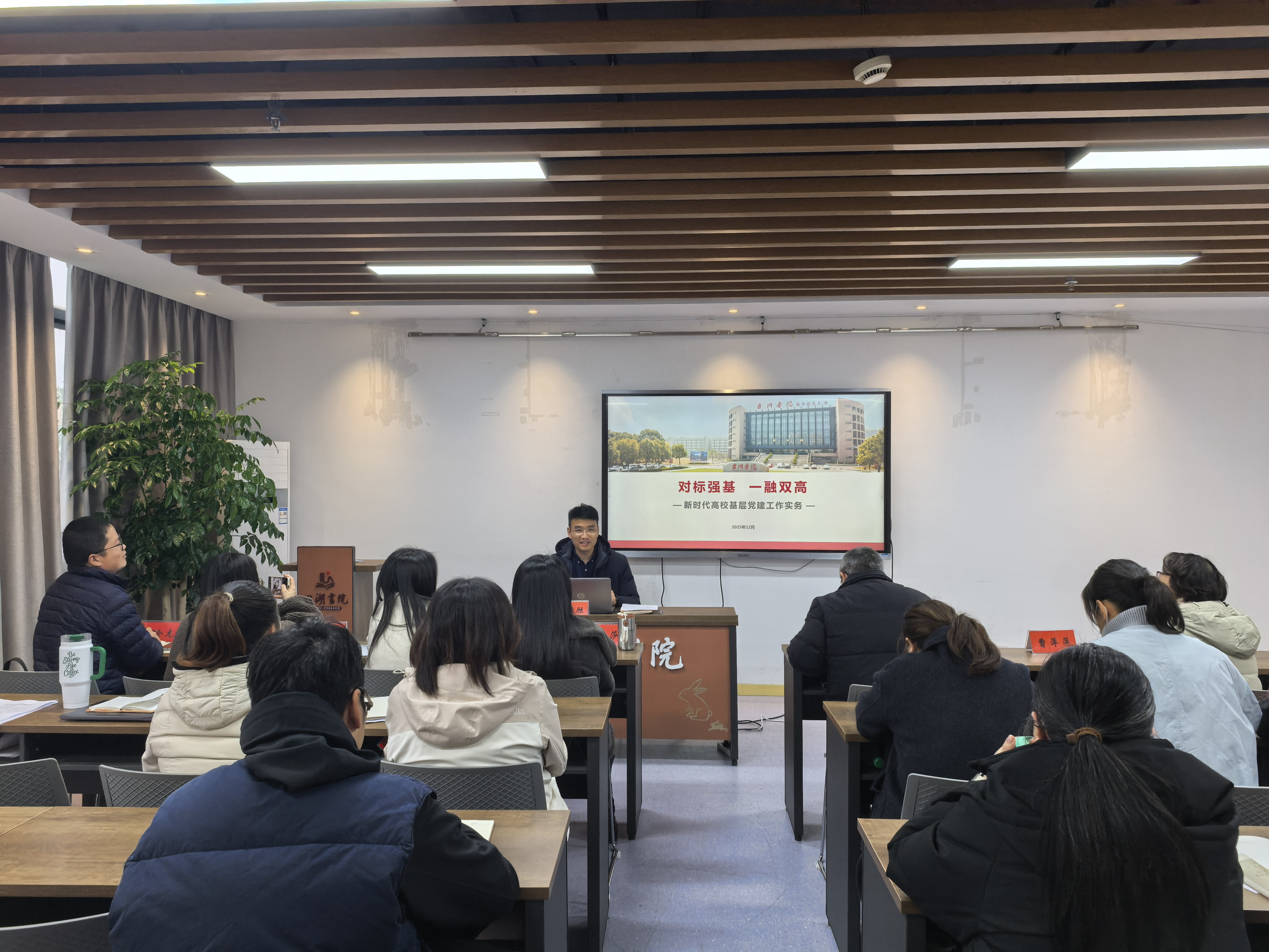 台州学院生命科学学院党委副书记陈鸿胜作《“对标强基 一融双高”--新时代高校基层党建工作实务》专题辅导。他从对标对表,筑强“堡垒根基”、对标对表,筑强“堡垒根基”、提质增效,实现“一融双高”三个维度,系统阐述了新时代高校基层党建工作的核心路径。结合台州学院“一融双高”典型案例,分享交流如何打造“双创”建设样板。